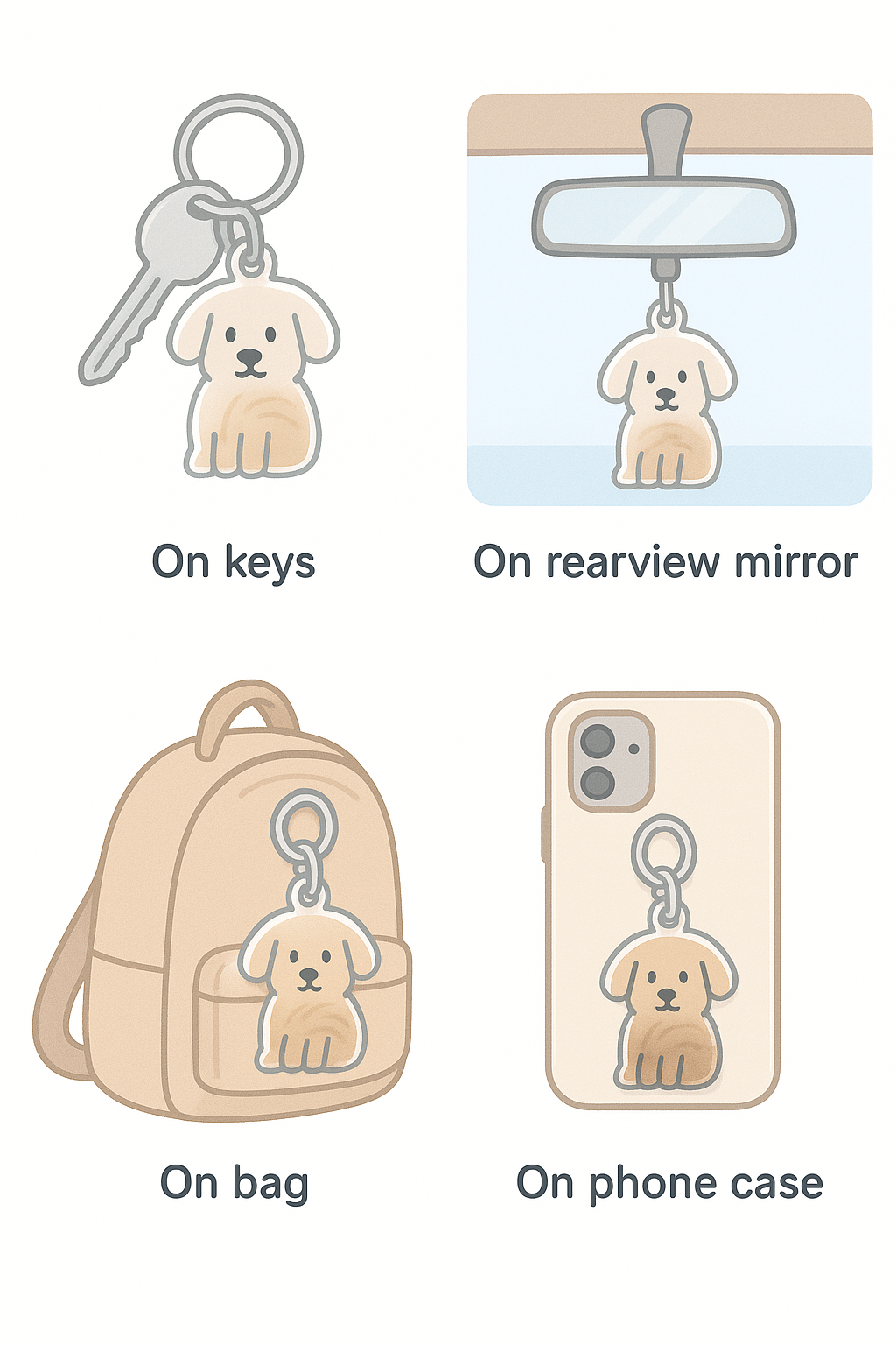 Take your dog’s love wherever you go on your keys, your bag, your car, or your phone.